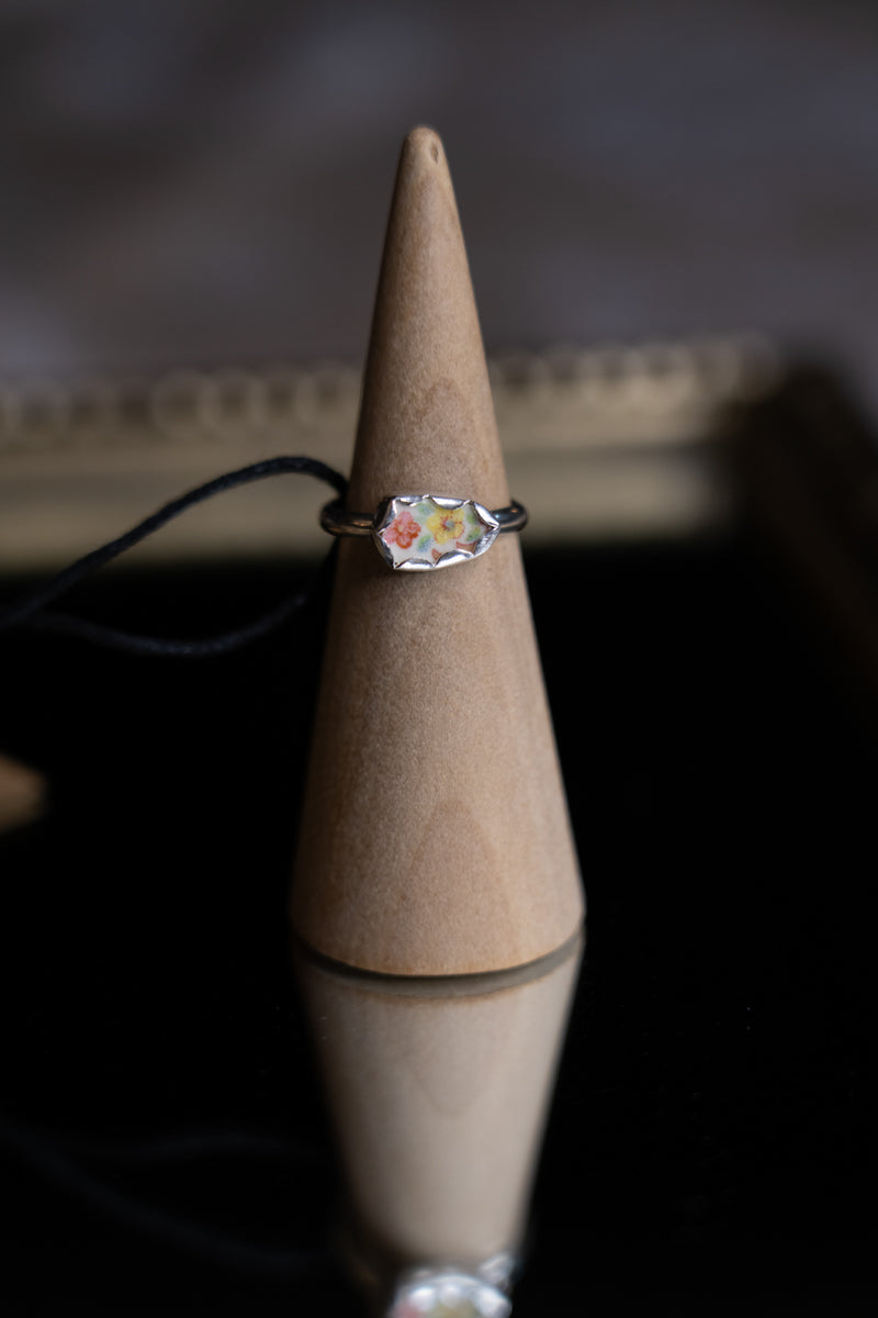 Floral Ceramic Sterling Silver Ring 6.5